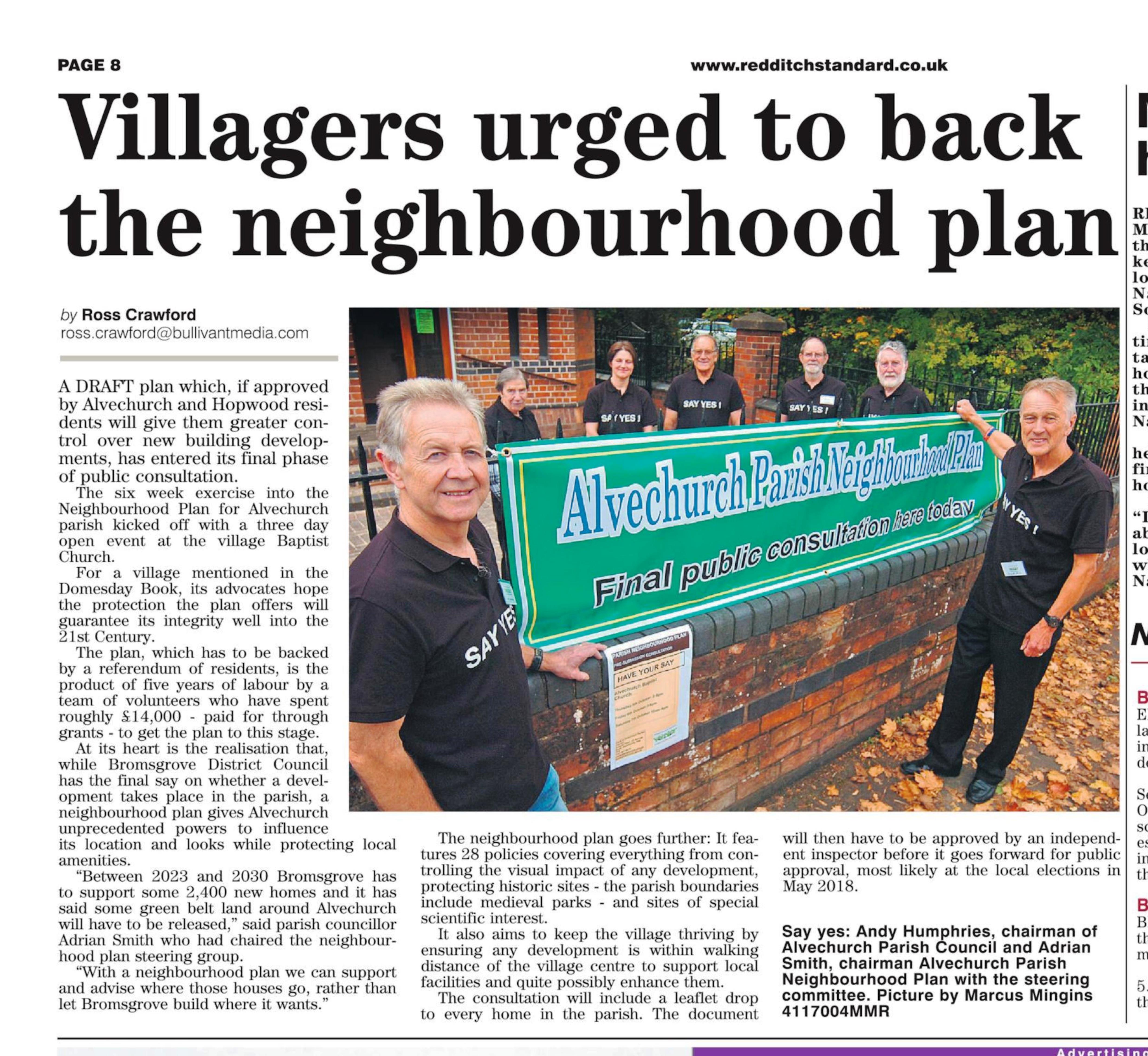 ALVECHURCH PARISH NEIGHBOURHOOD PLAN NOW BEING CONSULTED ON BY BROMSGROVE DISTRICT COUNCIL